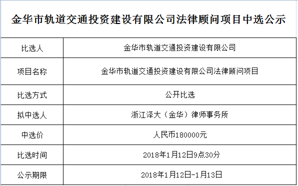 金華市軌道交通控股集團(tuán)有限公司2026年度法律顧問服務(wù)項(xiàng)目 中標(biāo)候選人公示