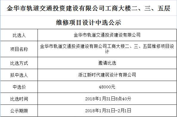 金華市公交集團(tuán)亞運(yùn)村公交首末站裝飾工程施工項(xiàng)目的成交結(jié)果公示