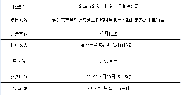金華市公交集團(tuán)亞運(yùn)村公交首末站裝飾工程施工項(xiàng)目的成交結(jié)果公示