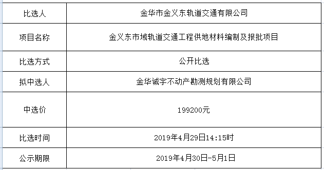 金華市軌道交通控股集團有限公司2026年度法律顧問服務(wù)項目 中標候選人公示