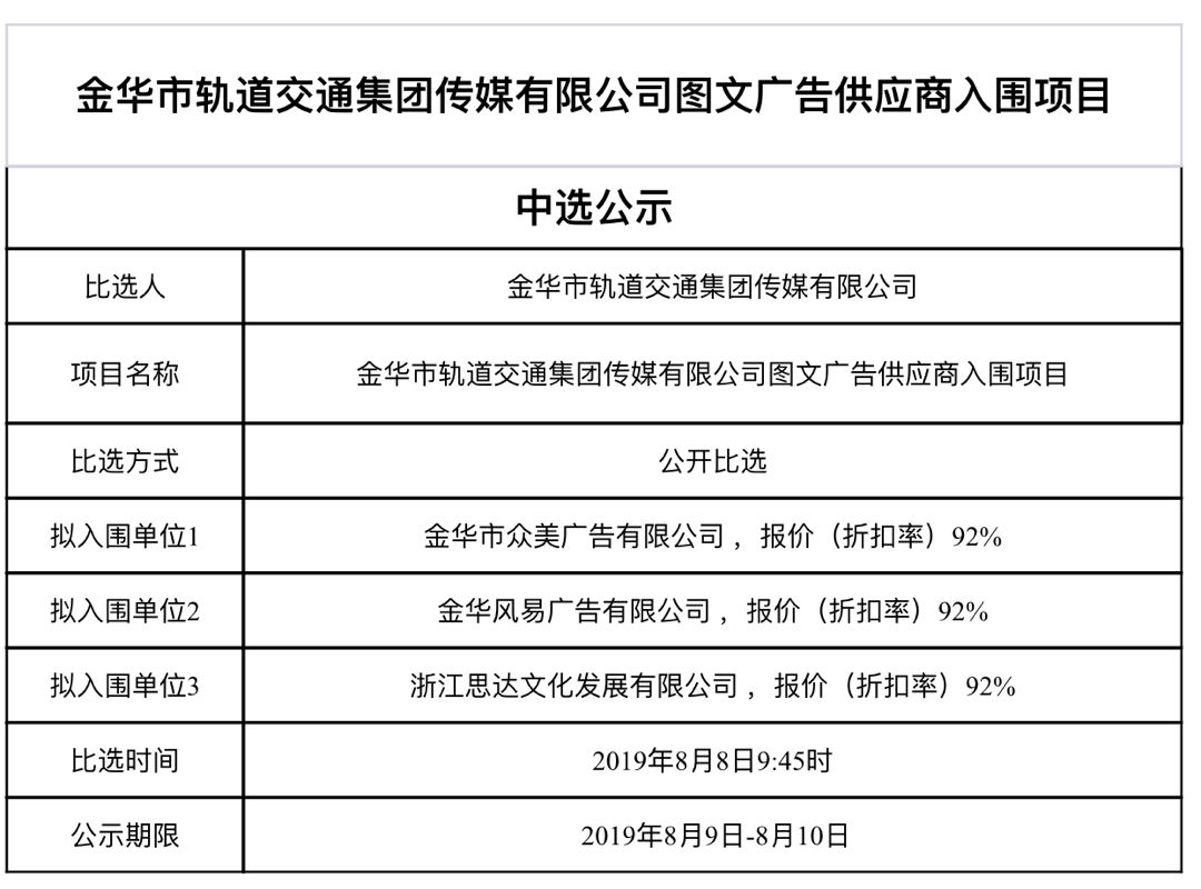 金華市軌道交通控股集團(tuán)有限公司2026年度法律顧問服務(wù)項目 中標(biāo)候選人公示