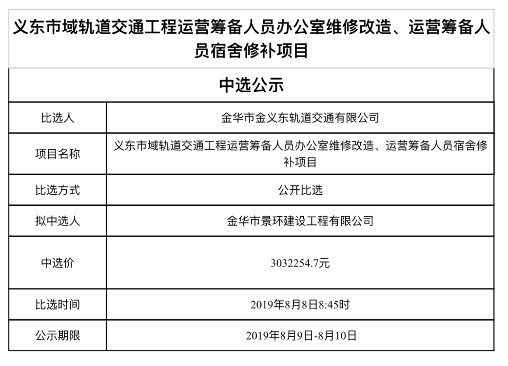 金華市金義東軌道交通有限公司運(yùn)營軌道交通智能巡檢系統(tǒng)采購項(xiàng)目中標(biāo)候選人公示