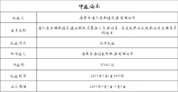 金華市金義東軌道交通有限公司運(yùn)營軌道交通智能巡檢系統(tǒng)采購項目中標(biāo)候選人公示