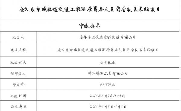 金華市金義東軌道交通有限公司運(yùn)營軌道交通智能巡檢系統(tǒng)采購項(xiàng)目中標(biāo)候選人公示