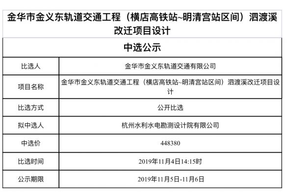 金華市金義東軌道交通有限公司運(yùn)營軌道交通智能巡檢系統(tǒng)采購項(xiàng)目中標(biāo)候選人公示