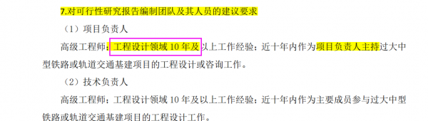 五、問(wèn):招標(biāo)文件中P12頁(yè): 7.對(duì)可行性研究報(bào)告編制團(tuán)隊(duì)及其人員的建議要求: (1)項(xiàng)目負(fù)責(zé)人高級(jí)工程師;工程設(shè)計(jì)領(lǐng)域10年及以上工作經(jīng)驗(yàn);近十年內(nèi)作為項(xiàng)目負(fù)責(zé)人主持過(guò)大中型鐵路或軌道交通基建項(xiàng)目的工程設(shè)計(jì)或咨詢(xún)工作。請(qǐng)問(wèn):“近十年內(nèi)作為項(xiàng)目負(fù)責(zé)人主持過(guò)大中型鐵路或軌道交通基建項(xiàng)目的工程設(shè)計(jì)或咨詢(xún)工作”中“近十年內(nèi)”可否理解為近十年內(nèi)完工的項(xiàng)目?